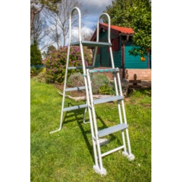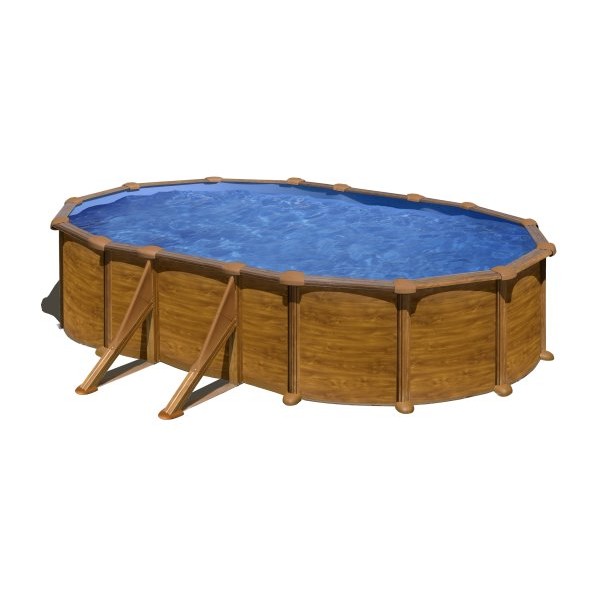 Piscine conçue entièrement en acier : structure et margelles.Son installation facile ne nécessite pas de dalle en béton obligatoire.