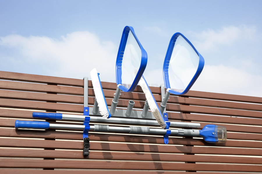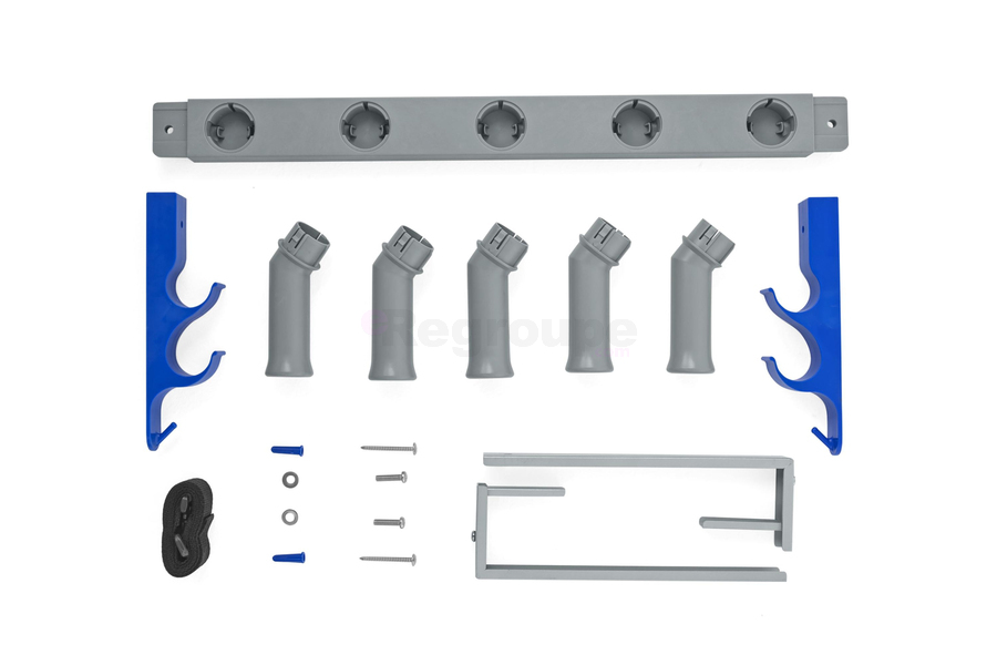 L’organisateur d’accessoires et d’équipement de piscine Flowclear StorePro vous permet de ranger tous vos outils de nettoyage de piscine en un seul endroit pratique. Ce support comporte des fentes de rangement pouvant accueillir jusqu’à cinq épuisettes, brosses, râteaux, aspirateurs ou tout autre type d’outil. Avec une poignée de 3 cm de diamètre, il est facile de garder tout ce dont vous avez besoin en un seul endroit pratique. Il y a également un emplacement pour deux perches, ainsi qu’une sangle pour un tuyau et des crochets pour divers accessoires. Cet organisateur optimisera votre espace de rangement et vous permettra de tout accéder facilement. Il est simple à installer : il suffit de le visser dans un mur ou de le suspendre sur une clôture. Quelle que soit votre décision, tout le matériel nécessaire est inclus dans le kit. Les supports inclus peuvent être ajustés jusqu’à 7,62 cm de profondeur, offrant ainsi flexibilité et polyvalence. Le StorePro est une solution durable, avec un support en acier et en plastique, et peut faire vraiment évoluer votre espace piscine !